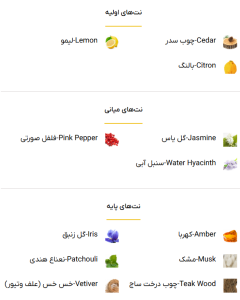 نتهای پایانی (Base Notes): سدر، مشک، کهربا