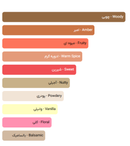 نوع رایحه: گرم، شیرین، گلی، میوهای، کهربایی