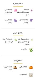 - نتهای میانی: ویستریا، گل صدتومانی، شکوفه درخت هلو