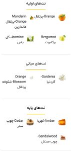 - نت آغازین: ترنج، پرتقال ماندارین، یاسمن