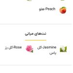- نت آغازین: هلو، طالبی، سیب، زردآلو (میوهای و شاداب)