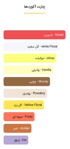 - نتهای پایه: کهربا، وانیل، چوب صندل