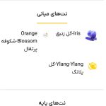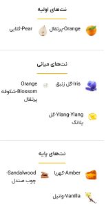 - نتهای ابتدایی: پرتقال، گلابی، عصاره پرتقال تلخ
