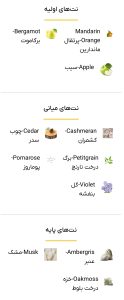 - نتهای میانی: زنبق، پتیگرین، سدر، پوماروس