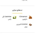 - نتهای میانی: دارچین، شیرینبیان، گل رز