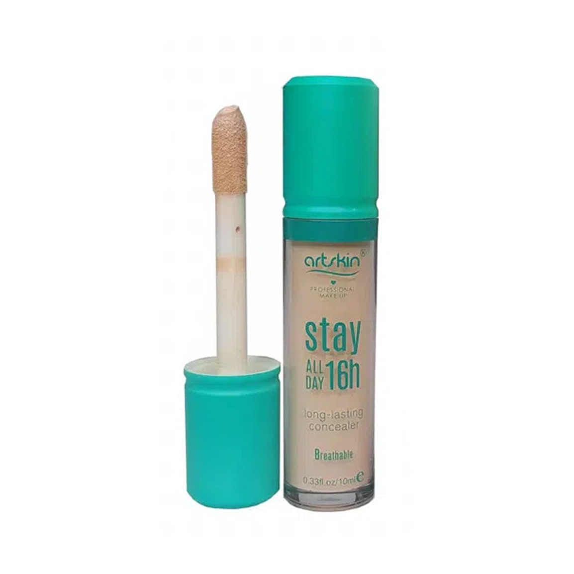کانسیلر مایع آرت اسکین مدل استی 16 ساعته (Stay 16h)کانسیلر آرت اسکین مدل Stay 16h (Art Skin Liquid Concealer, Stay 16h) یک کانسیلر با بافت مایع و مات است که در بستهبندی ۱۰ میلیلیتری عرضه شده و معمولاً در سه شماره رنگ (روشن تا تیره) یافت میشود. این کانسیلر پوششدهی بسیار بالا (فولکاور) دارد، ضدآب است و تا ۱۶ ساعت ماندگاری دارد. ویژگی متمایز آن، بافت سبک و مخملی است که بدون ایجاد احساس سنگینی و ماسیدگی جلوهای طبیعی و یکدست به پوست میبخشد—مناسب برای انواع پوستها، حتی برای کانتورینگ.